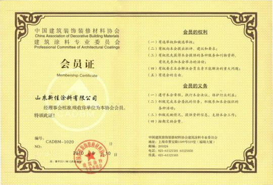 新佳涂料荣获中国建筑施工首选优质建材称号