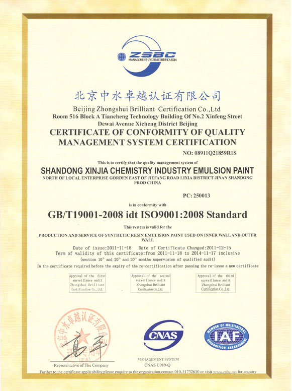 ISO9001国际质量管理体系认证证书