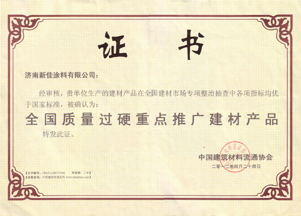 新佳涂料荣获无毒害绿色建材称号
